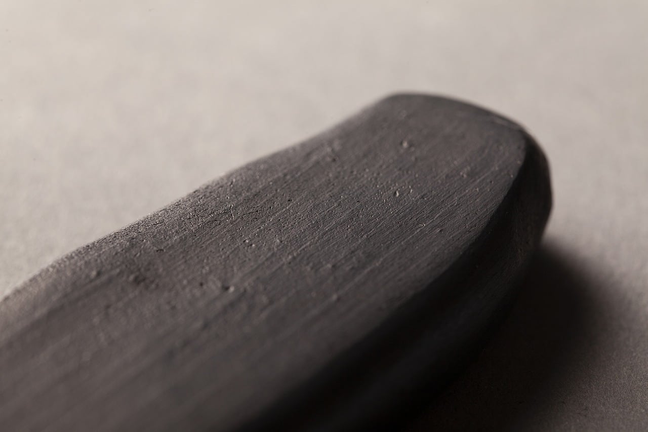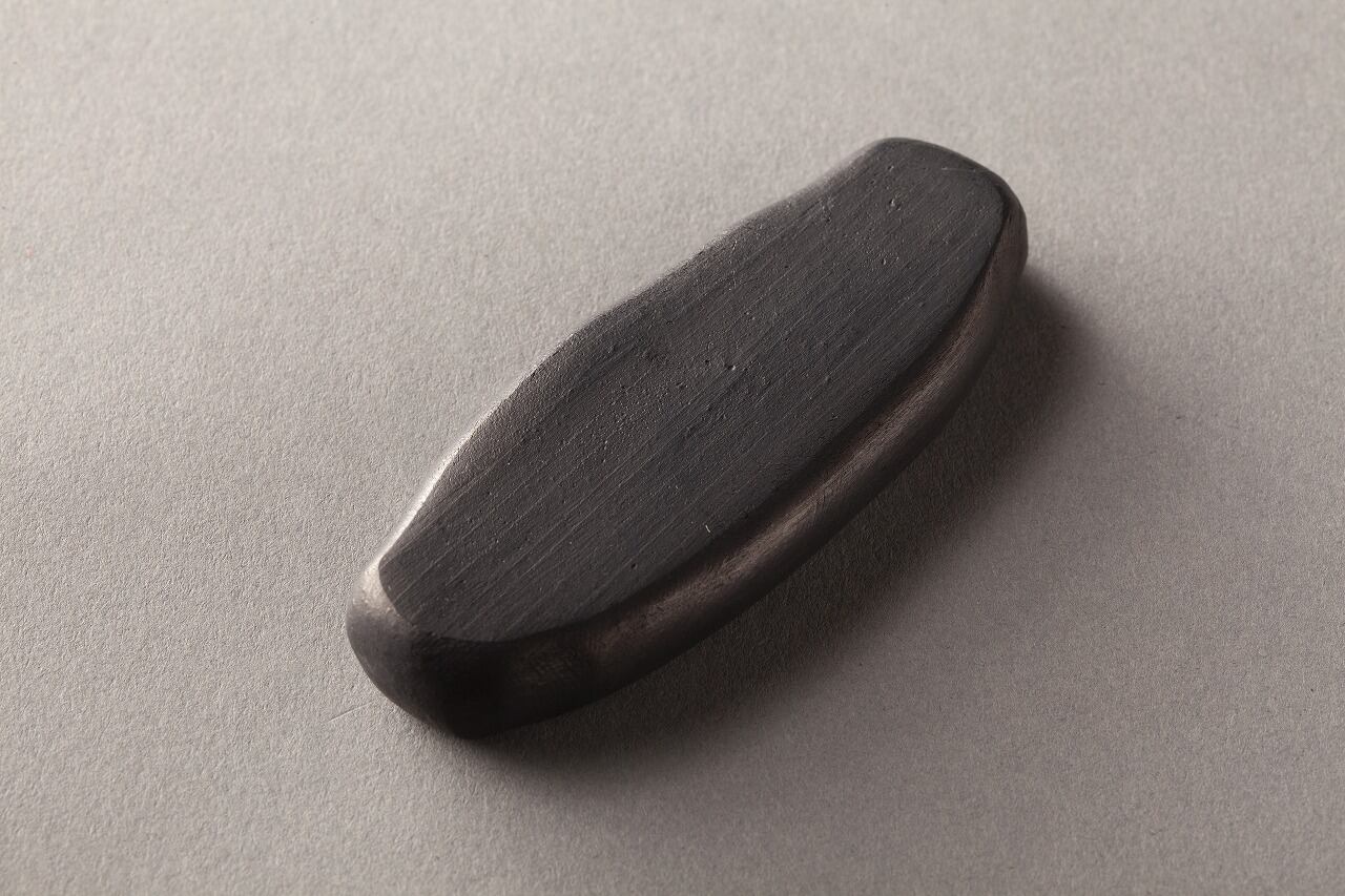 It is comfortable to polish and bleeds well with light ink. Blue-black with a little weight as a whole. The texture of ancient ink created without a wooden pattern.